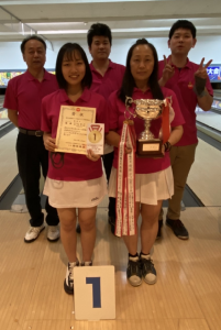 アルプラザボウルで開催された京都府北支部競技大会に7チーム14名が参加し、2人チーム戦で船井C(森下結・森下美紀)チームが優勝、船井A(村上・平重)チームが準優勝、船井F(円山・森下潤)チームが第4位、船井B(大下・上山)チームが第5位、船井D(槙野・越川)チームが第6位に入賞、シングルス戦で森下潤が第3位、森下美紀が第5位に入賞しました。また、個人決勝戦に、森下美紀、越川、森下結、森下潤、村上、大下が進出し、越川拓磨が優勝、森下潤が準優勝、森下美紀が第4位、大下が第5位、森下結が第6位に入賞しました。また、越川が個人ハイゲーム賞とハイシリーズ賞を獲得しました。 |